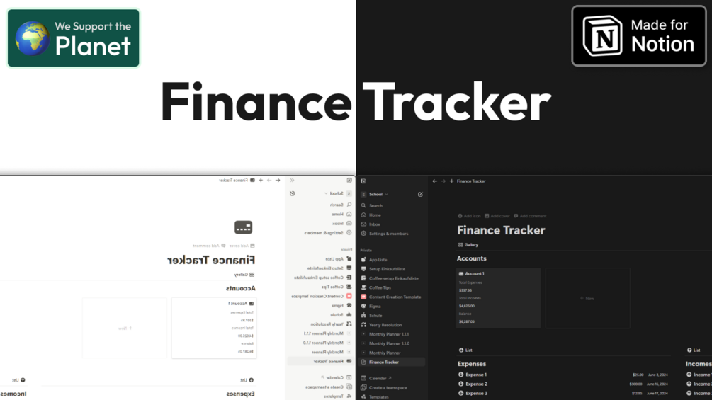 Notion Finance Tracker (Notion Template) | 40% of the money you spend will be donated to save the planet