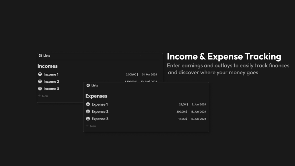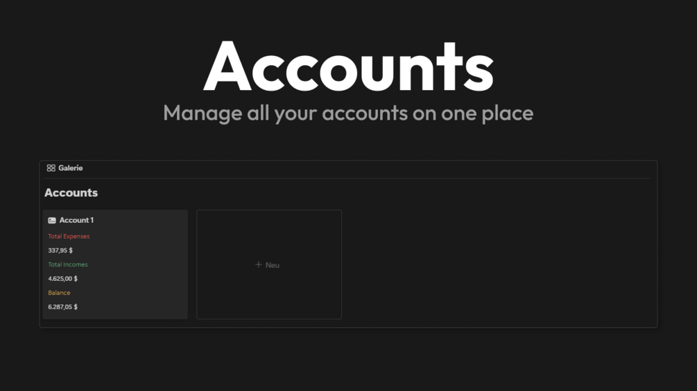 Use the endless power of Notion with my new Notion Finance Tracker. With it, you can have an overview of all your Finances.